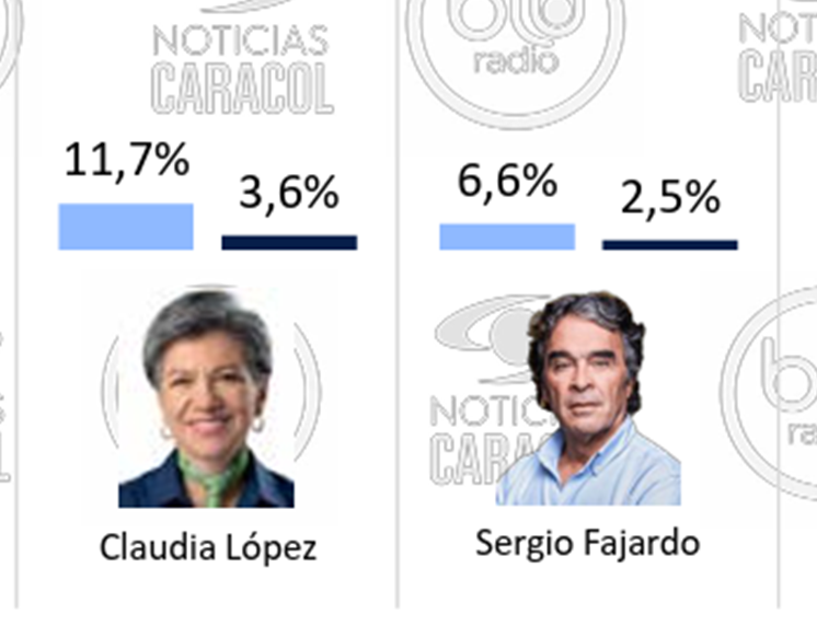 Claudia López cae de 11,7 % a apenas 3,6 %, mientras Sergio Fajardo pierde cerca de cuatro puntos y queda prácticamente fuera de competencia.