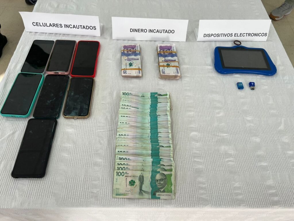 Durante el procedimiento se logró además la incautación de $18 millones en efectivo, dos motos y siete teléfonos celulares.