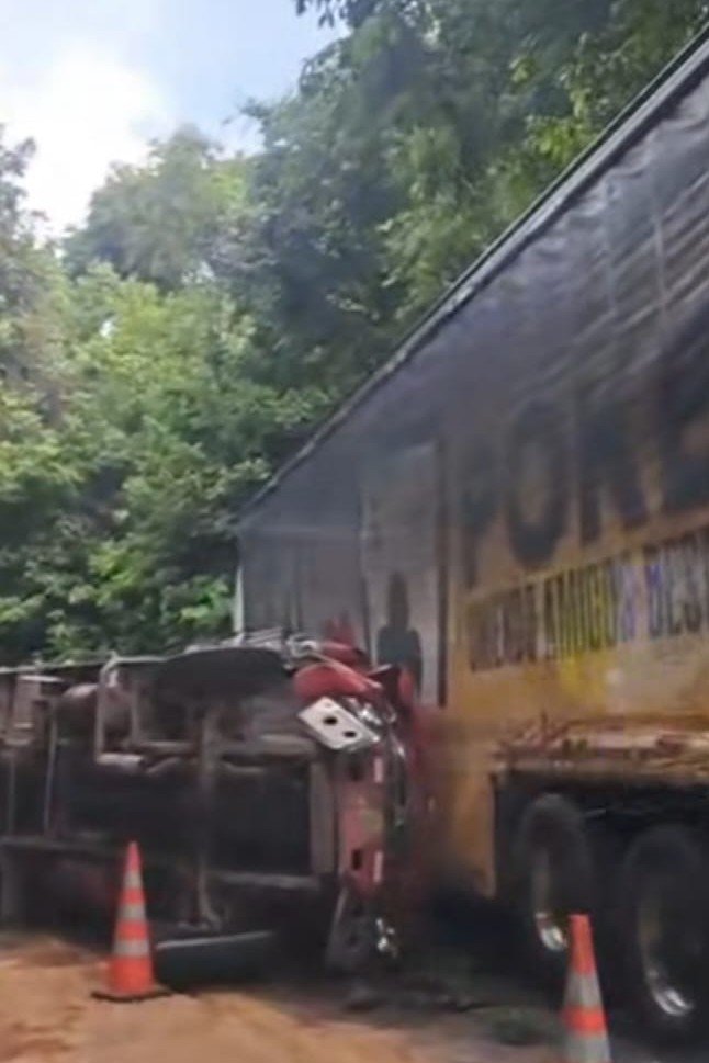 El hecho ocurrió cuando un camión de placas SBA-802 se volcó lateralmente e impactó contra un vehículo transportador de cerveza, tipo tractomula, de placas SXX. 472 cuyos conductores Henry Velásquez y Edisson Amaya, respectivamente, resultaron ilesos en el percance.