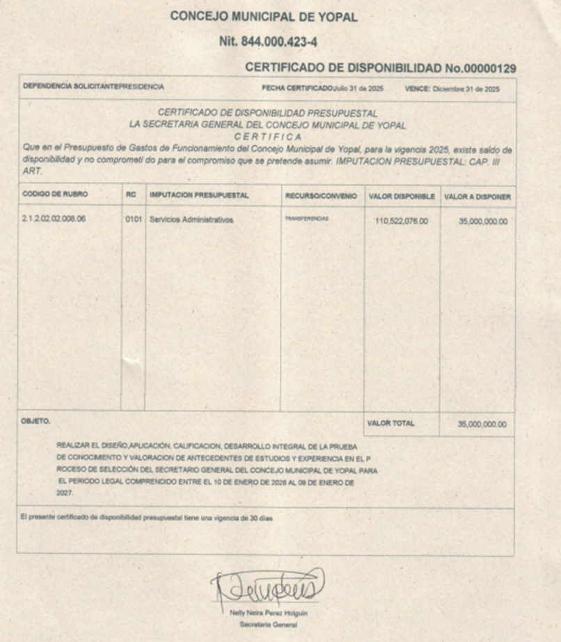 El concurso de secretario general del Concejo de Yopal tendría conflictos de intereses