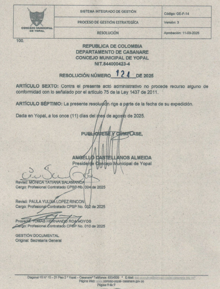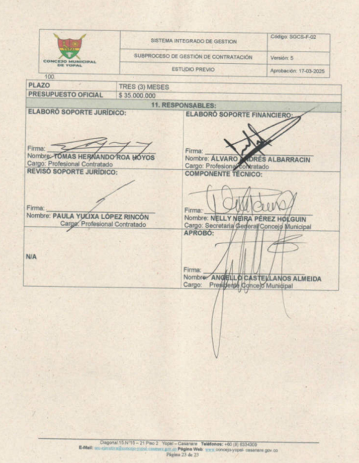 Para finalizar, en el concejo de Yopal ya se adelanta una recusación contra la señora Nelly Pérez  por no declararse impedida en dicho concurso.