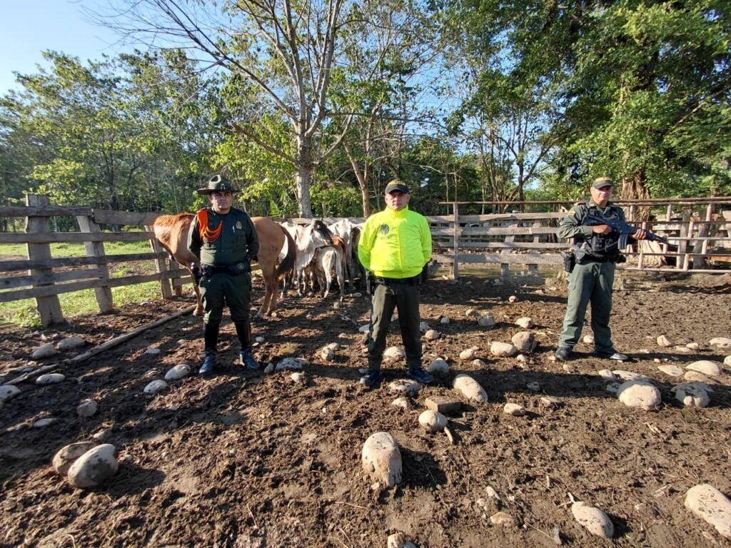 Los animales recuperados corresponden a: 12 bovinos (seis hembras de 4 a 6 años y seis machos de 6 a 8 meses) raza cebú, colores blanco y rojo; y un equino color alazán, de aproximadamente 12 a 15 años, avaluados en cerca de $45 millones a precio comercial.