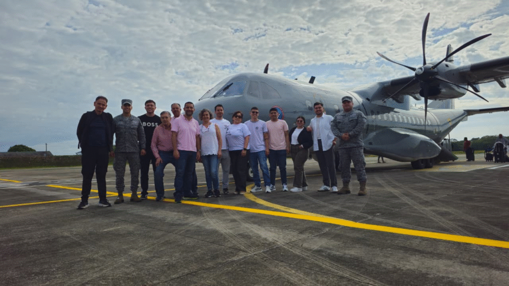 La Fuerza Aeroespacial Colombiana (FAC), a través del Grupo Aéreo del Casanare (GACAS), participa activamente en esta jornada mediante el traslado aéreo de más de 15 profesionales de la salud en una aeronave Casa C-295 del Comando Aéreo de Transporte Militar (CATAM), con sede en Bogotá.