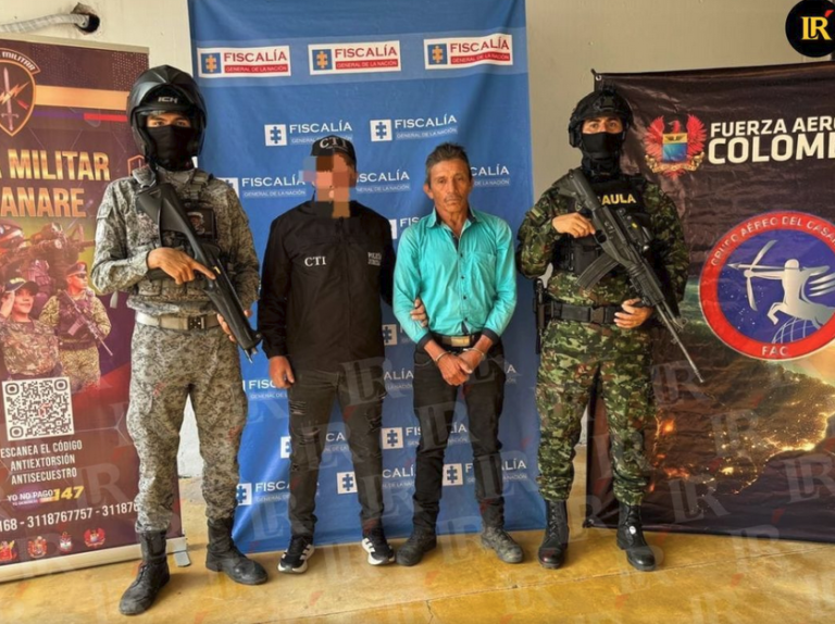 La detención se hizo efectiva en cumplimiento de una orden de captura emitida por la Fiscalía General de la Nación por los presuntos delitos de secuestro extorsivo; fabricación, tráfico, porte o tenencia de armas de fuego, accesorios, partes o municiones; y hurto calificado y agravado.