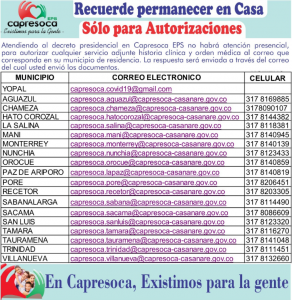 La gerente de Capresoca EPS, Nuria Bohórquez, informa a todos los afiliados de la entidad, que dando cumplimiento a las instrucciones del Gobierno Nacional, esta