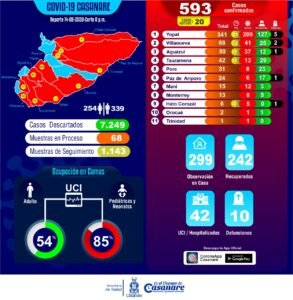 A la fecha, el departamento asciende a 593 casos notificados como positivos para SARS – COV – 2 (Covid-19), de los cuales 242 son pacientes