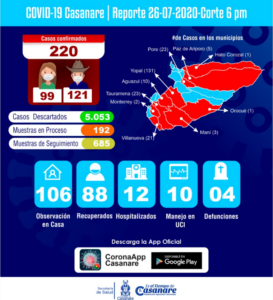A la fecha, el departamento asciende a 220 casos notificados como positivos para Coronavirus, de los cuales 88 son pacientes recuperados, 106 con aislamiento obligatorio
