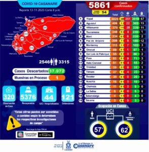 A la fecha en Casanare se han reportado 5.754 casos de Covid-19 de los cuales 5212 se encuentran recuperados, en aislamiento en sus domicilios 365,