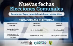 Para el 25 de junio de 2021 fueron aplazadas las elecciones de dignatarios de Juntas y Asociaciones de Juntas de Accion Comunal respectivamente, como parte