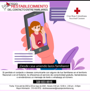 La Cruz Roja Colombiana Seccional Casanare pone en marcha su programa de restablecimiento de contactos familiares, que tiene por objetivo brindar el servicio de conectividad