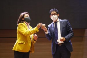 El gobernador Ramiro Barragán Adame hizo parte del lanzamiento de la moneda conmemorativa a los 200 años de Boyacá, junto a Diana Sandoval, funcionaria del