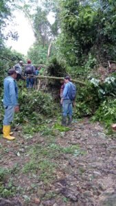 Campesinos yopaleños y funcionarios de la Gobernación de Casanare y Alcaldía Municipal trabajan en la adecuación de una vía alterna. Tras socavación y pérdida de