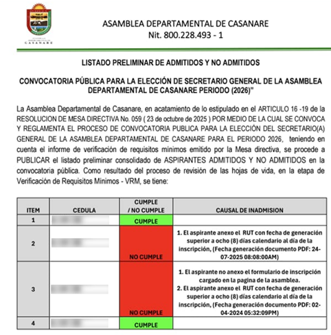 Sin salir de los cuestionamientos por el concurso para elegir Contralor, la Asamblea se apresta para el proceso de elección del secretario general de la corporación para el periodo 2026.